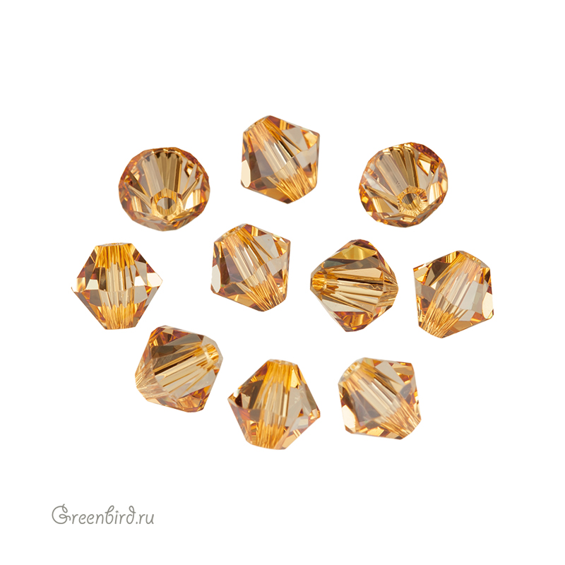 Компонент для бижутерии Swarovski – бусины-биконусы (Swarovski Биконусы). Размер: 5 мм, отверстие: 0,8 мм, цвет: Golden Topaz (#1003). Производство: Австрия. Цена указана за 10 шт.