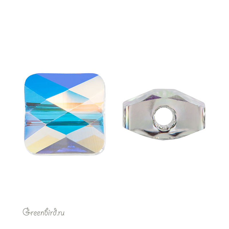 Компонент для бижутерии Swarovski – бусина Мини Квадрат (Swarovski Mini Square Bead). Размер: 6 мм, отверстие: 1,4 мм, цвет: Crystal Aurore Boreale (#001AB). Производство: Австрия. Цена указана за 1 шт.