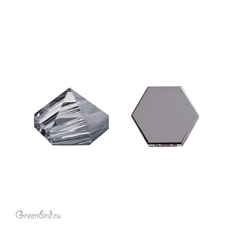 Swarovski 5060 Бусина Hexagon Spike Bead — бусина «Шестиугольный шип». Размер: 7,5 мм, 2 параллельных отверстия: 0,9 мм. Цвет: прозрачный с эффектом "Серебряная ночь" / Crystal Silver Night (#001SINI). Материал: стекло. Производство: Австрия. Цена указана за 1 шт.