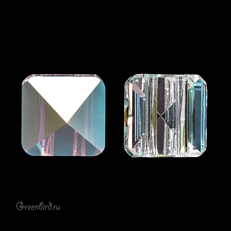 Компонент для бижутерии Swarovski – бусина Шип Квадратный (Swarovski Square Spike Bead). Размер: 7,5 мм, 2 параллельных отверстия, цвет: Crystal Aurore Boreale (#001AB). Производство: Австрия. Цена указана за 1 шт.