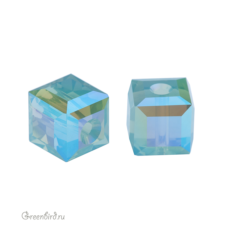 Компонент для бижутерии Swarovski – бусина Куб (Swarovski Cube bead). Размер: 6 мм, отверстие: 0,9 мм, цвет: Pacific Opal Shimmer B (#390SHIMB). Производство: Австрия. Цена указана за 1 шт.