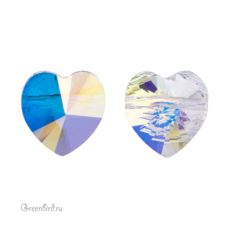 Компонент для бижутерии Swarovski – граненая бусина Swarovski Heart Bead (сердечко). Размер: 10 мм, отверстие: 1,3 мм, цвет: Crystal Aurore Boreale (#001AB). Производство: Австрия. Цена указана за 1 шт.