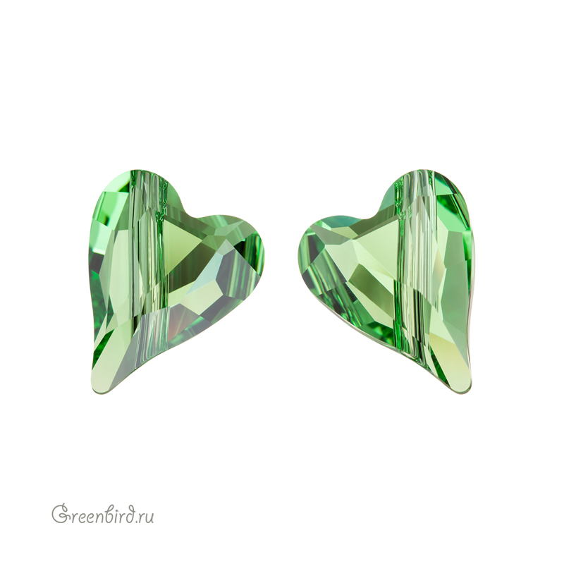 Компонент для бижутерии Swarovski – граненая бусина Swarovski Wild Heart Bead (сердечко вытянутое с диагональным отверстием). Размер: 12,5 х 10,1 х 5,6 мм, отверстие: 1,6 мм, цвет: Peridot (#214). Производство: Австрия. Цена указана за 1 шт.
