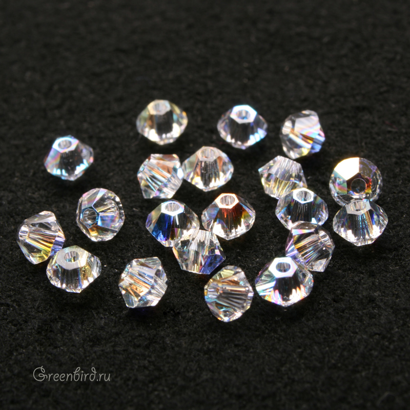 Компонент для бижутерии Swarovski – бусины-биконусы (Swarovski Биконусы). Размер: 3 мм, отверстие: 0,82 мм, цвет: Crystal Aurore Boreale (#001AB). Производство: Австрия. Цена указана за 20 шт.
