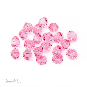 Компонент для бижутерии Swarovski – бусины-биконусы (Swarovski Биконусы). Размер: 3 мм, отверстие: 0,82 мм, цвет: Rose (#209). Производство: Австрия. Цена указана за 20 шт.\n