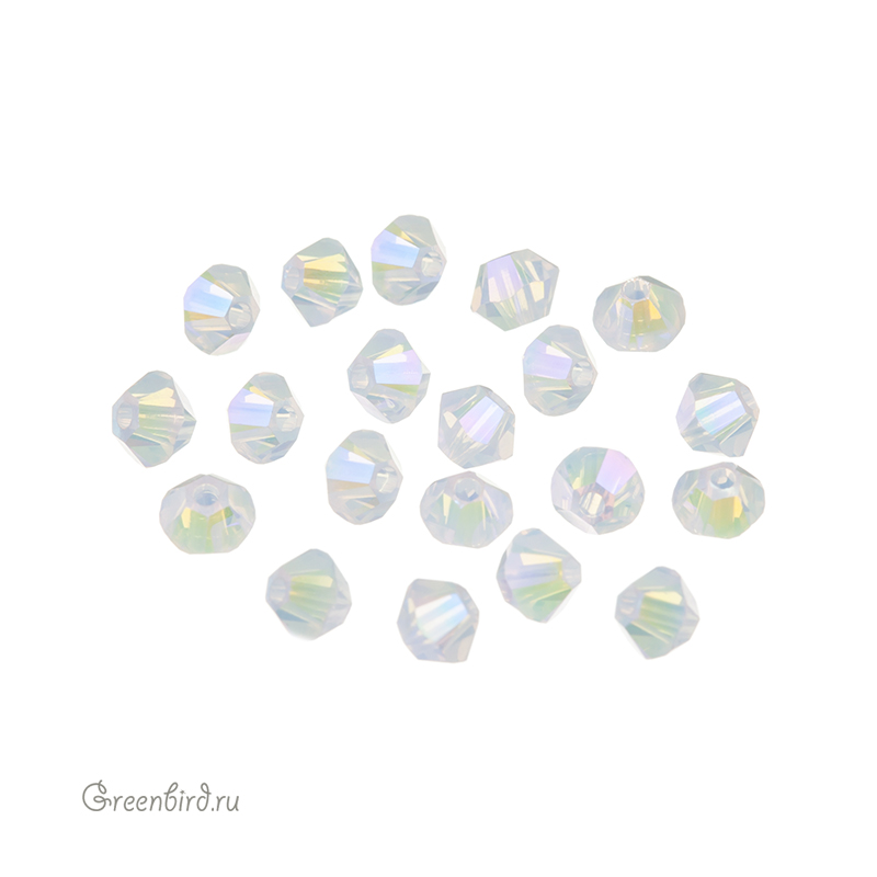 Swarovski 5328 Xilion Bicone Bead — биконусы или двуконусные бусины с фирменной огранкой Xilion. Эта огранка создаёт максимальный блеск за счёт дополнительных фасеток на гранях. Компонент для бижутерии и вышивки. Размер: 3 мм, отверстие: ~0,6-0,7 мм. Цвет: белый опал с мерцающим эффектом с двух сторон кристалла / White Opal Shimmer 2X (#234SHIM2). Материал: стекло. Производство: Австрия. Цена указана за 20 шт.