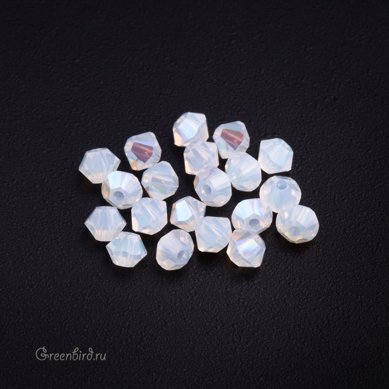 Компонент для бижутерии Swarovski – бусины-биконусы (Swarovski Биконусы). Размер: 3 мм, отверстие: 0,82 мм, цвет: White Opal Shimmer (#234SHIM). Производство: Австрия. Цена указана за 20 шт.