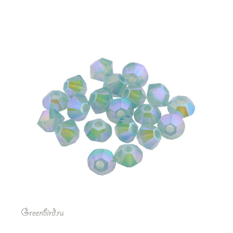 Компонент для бижутерии Swarovski – бусины-биконусы (Swarovski Биконусы). Размер: 3 мм, отверстие: 0,82 мм, цвет: Pacific Opal Shimmer 2X (#390SHIM2). Производство: Австрия. Цена указана за 20 шт.