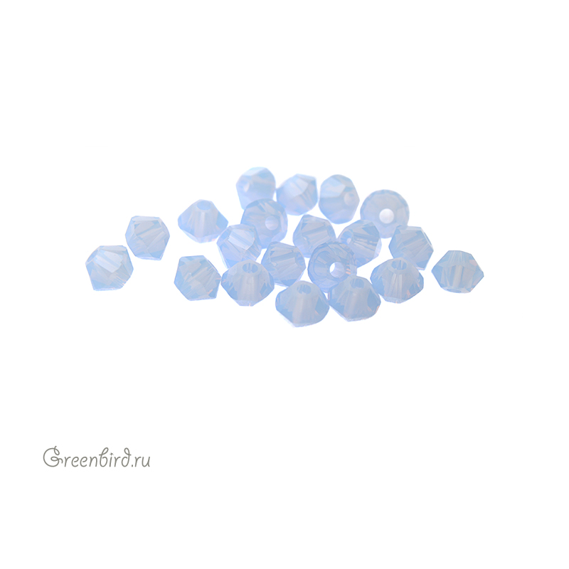 Компонент для бижутерии Swarovski – бусины-биконусы (Swarovski Биконусы). Размер: 3 мм, отверстие: 0,82 мм, цвет: Air blue opal (#285). Производство: Австрия. Цена указана за 20 шт.