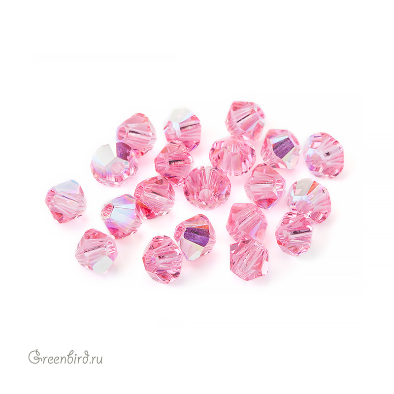 Компонент для бижутерии Swarovski – бусины-биконусы (Swarovski Биконусы). Размер: 3 мм, отверстие: 0,82 мм, цвет: Rose AB (#209AB). Производство: Австрия. Цена указана за 20 шт.\n
