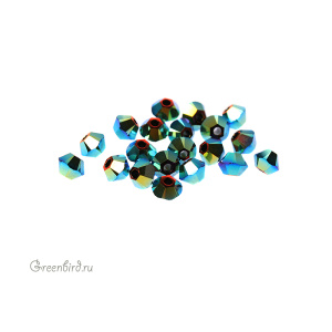 Компонент для бижутерии Swarovski – бусины-биконусы (Swarovski Биконусы). Размер: 3 мм, отверстие: 0,82 мм, цвет: Jet Aurore Boreale 2X (#280AB2). Производство: Австрия. Цена указана за 20 шт.