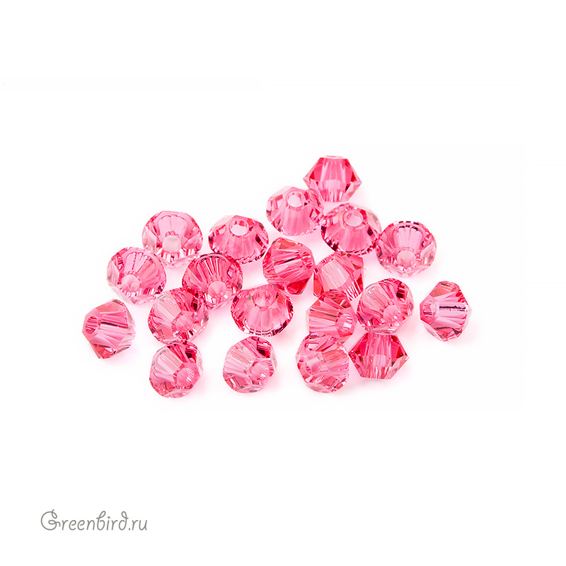 Компонент для бижутерии Swarovski – бусины-биконусы (Swarovski Биконусы). Размер: 3 мм, отверстие: 0,82 мм, цвет: Indian Pink (#289). Производство: Австрия. Цена указана за 20 шт.\n