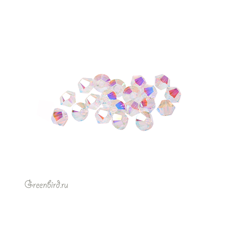 Компонент для бижутерии Swarovski – бусины-биконусы (Swarovski Биконусы). Размер: 3 мм, отверстие: 0,82 мм, цвет: Crystal AB 2X (#001AB2). Производство: Австрия. Цена указана за 20 шт.