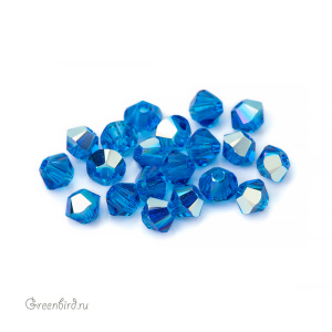 Компонент для бижутерии Swarovski – бусины-биконусы (Swarovski Биконусы). Размер: 3 мм, отверстие: 0,82 мм, цвет: Capri Blue AB (#243AB). Производство: Австрия. Цена указана за 20 шт.\n