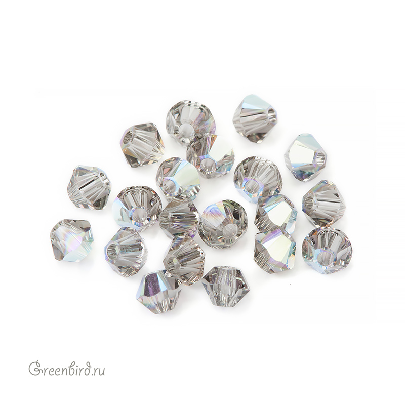 Компонент для бижутерии Swarovski – бусины-биконусы (Swarovski Биконусы). Размер: 3 мм, отверстие: 0,82 мм, цвет: Black Diamond AB (#215AB). Производство: Австрия. Цена указана за 20 шт.\n