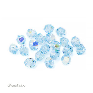 Компонент для бижутерии Swarovski – бусины-биконусы (Swarovski Биконусы). Размер: 3 мм, отверстие: 0,82 мм, цвет: Aquamarine AB (#202AB). Производство: Австрия. Цена указана за 20 шт.\n