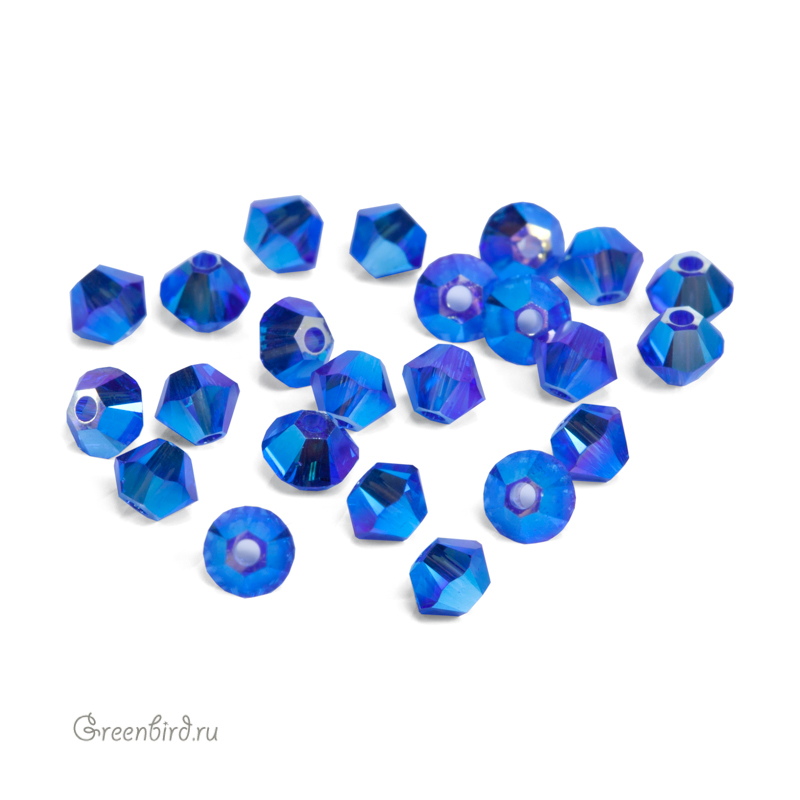 Swarovski 5328 Xilion Bicone Bead — биконусы или двуконусные бусины с фирменной огранкой Xilion. Эта огранка создаёт максимальный блеск за счёт дополнительных фасеток на гранях. Компонент для бижутерии и вышивки. Размер: 3 мм, отверстие: ~0,6-0,7 мм. Цвет: величественный синий с радужным эффектом с двух сторон кристалла / Majestic Blue AB2 (#296AB2). Материал: стекло. Производство: Австрия. Цена указана за 20 шт.