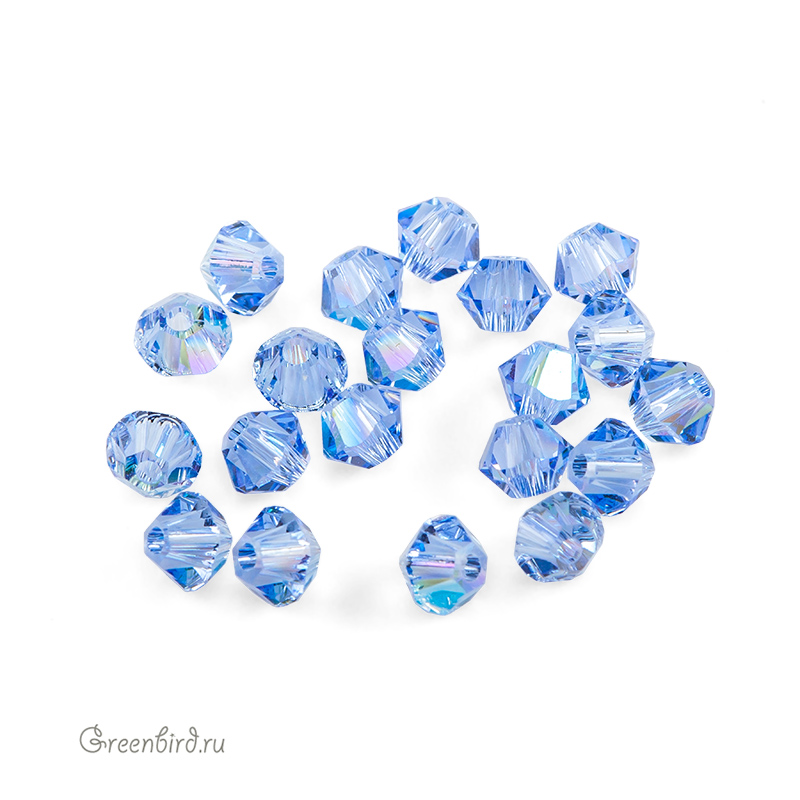 Компонент для бижутерии Swarovski – бусины-биконусы (Swarovski Биконусы). Размер: 3 мм, отверстие: 0,82 мм, цвет: Light Sapphire Shimmer (#211SHIM). Производство: Австрия. Цена указана за 20 шт.