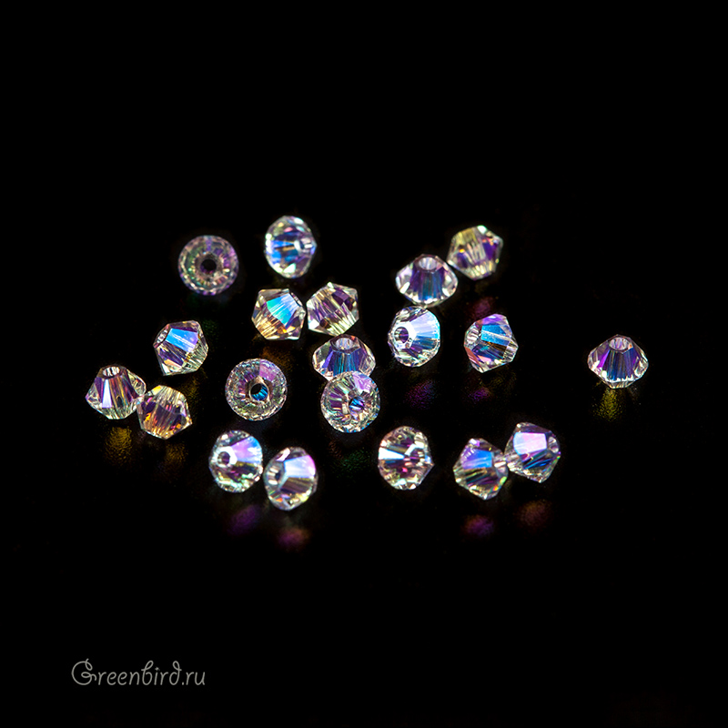 Компонент для бижутерии Swarovski – бусины-биконусы (Swarovski Биконусы). Размер: 3 мм, отверстие: 0,82 мм, цвет: Crystal Shimmer 2X (#001SHIM2). Производство: Австрия. Цена указана за 20 шт.