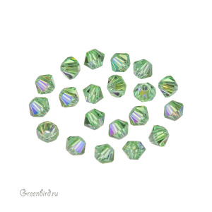 Компонент для бижутерии Swarovski – бусины-биконусы (Swarovski Биконусы). Размер: 3 мм, отверстие: 0,82 мм, цвет: Peridot Shimmer 2X (#214SHIM2). Производство: Австрия. Цена указана за 20 шт.