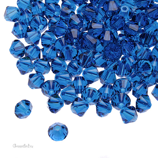 Компонент для бижутерии Swarovski – бусины-биконусы (Swarovski Биконусы). Размер: 4 мм, отверстие: 0,6 мм, цвет: Capri Blue (#243). Производство: Австрия. Цена указана за 20 шт.