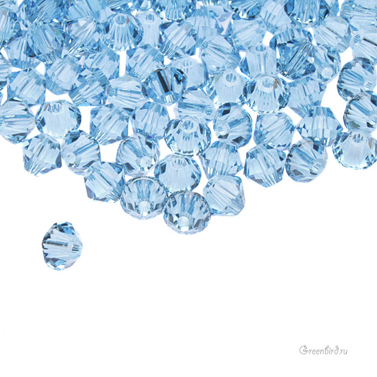 Компонент для бижутерии Swarovski – бусины-биконусы (Swarovski Биконусы). Размер: 4 мм, отверстие: 0,6 мм, цвет: Aquamarine (#202). Производство: Австрия. Цена указана за 20 шт.