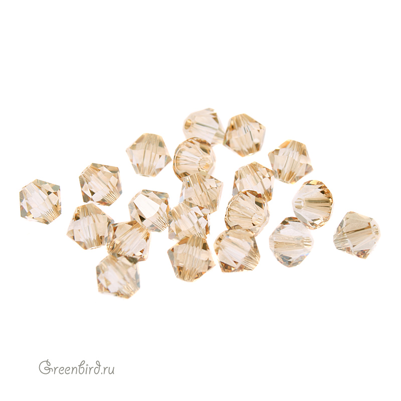 Компонент для бижутерии Swarovski – бусины-биконусы (Swarovski Биконусы). Размер: 4 мм, отверстие: 0,6 мм, цвет: Golden Shadow (#001GSHA). Производство: Австрия. Цена указана за 20 шт.