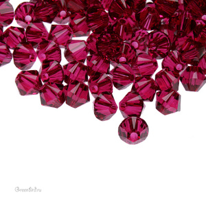 Компонент для бижутерии Swarovski – бусины-биконусы (Swarovski Биконусы). Размер: 4 мм, цвет: Ruby (#501). Производство: Австрия. Цена указана за 20 шт.