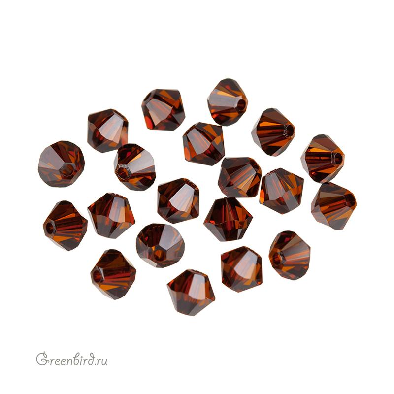 Компонент для бижутерии Swarovski – бусины-биконусы (Swarovski Биконусы). Размер: 4 мм, отверстие: 0,8 мм, цвет: Smoked Amber (#1001). Производство: Австрия. Цена указана за 20 шт.