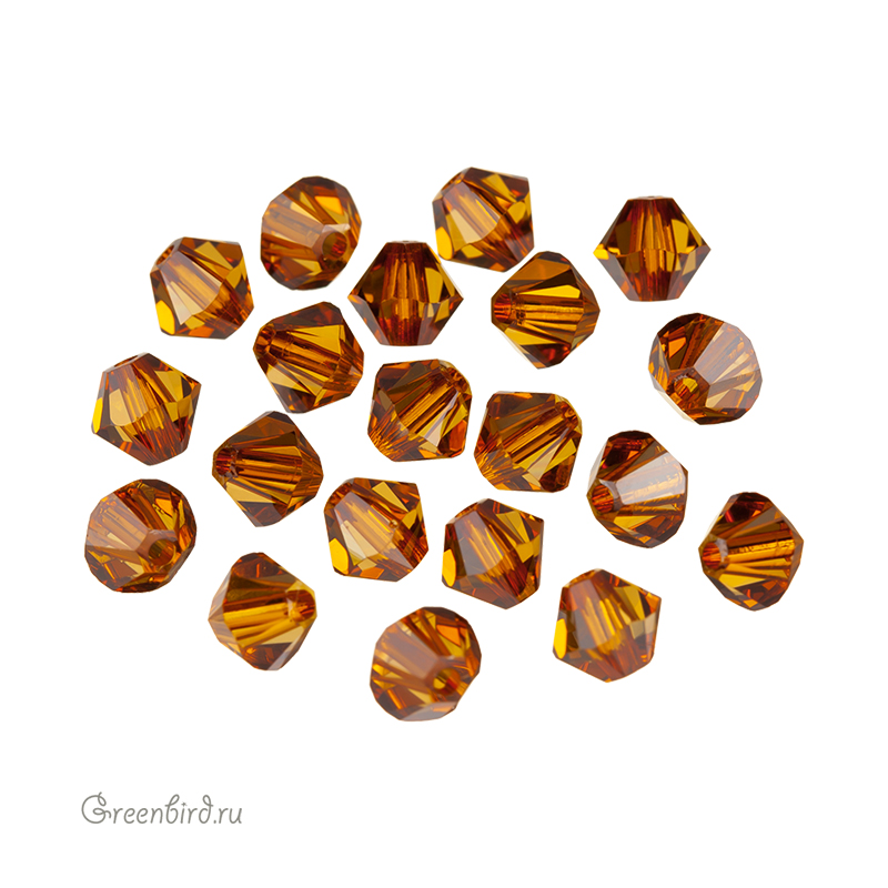 Swarovski 5328 Xilion Bicone Bead — биконусы или двуконусные бусины с фирменной огранкой Xilion. Эта огранка создаёт максимальный блеск за счёт дополнительных фасеток на гранях. Компонент для бижутерии и вышивки. Размер: 4 мм, отверстие: 0,8 мм. Цвет: светлый янтарь / Light Amber (#1002). Материал: стекло. Производство: Австрия. Цена указана за 20 шт.