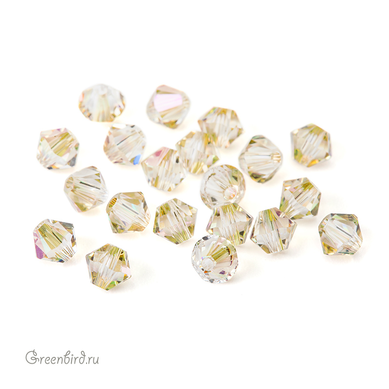 Компонент для бижутерии Swarovski – бусины-биконусы (Swarovski Биконусы). Размер: 4 мм, цвет: Luminous Green (#001LUMG). Производство: Австрия. Цена указана за 20 шт.\n