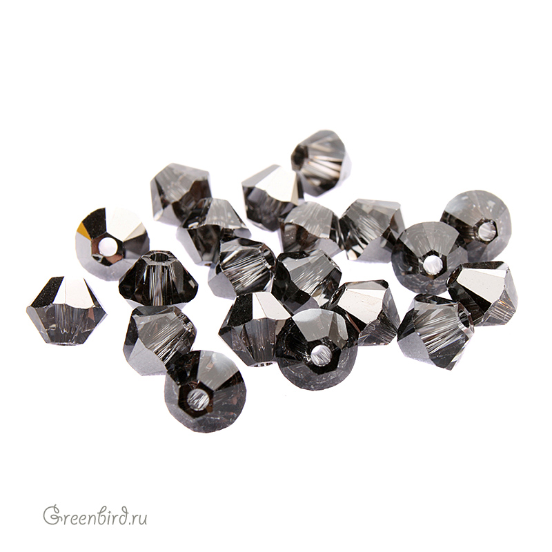 Компонент для бижутерии Swarovski – бусины-биконусы (Swarovski Биконусы). Размер: 4 мм, отверстие: 0,6 мм, цвет: Silver Night (#001SINI). Производство: Австрия. Цена указана за 20 шт.