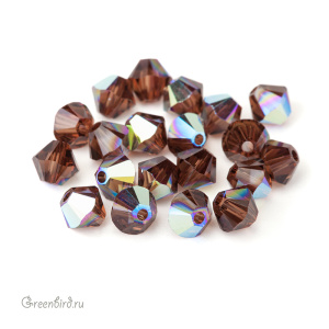 Компонент для бижутерии Swarovski – бусины-биконусы (Swarovski Биконусы). Размер: 4 мм, отверстие: 0,6 мм, цвет: Smoked Topaz AB (#220AB). Производство: Австрия. Цена указана за 20 шт.\n