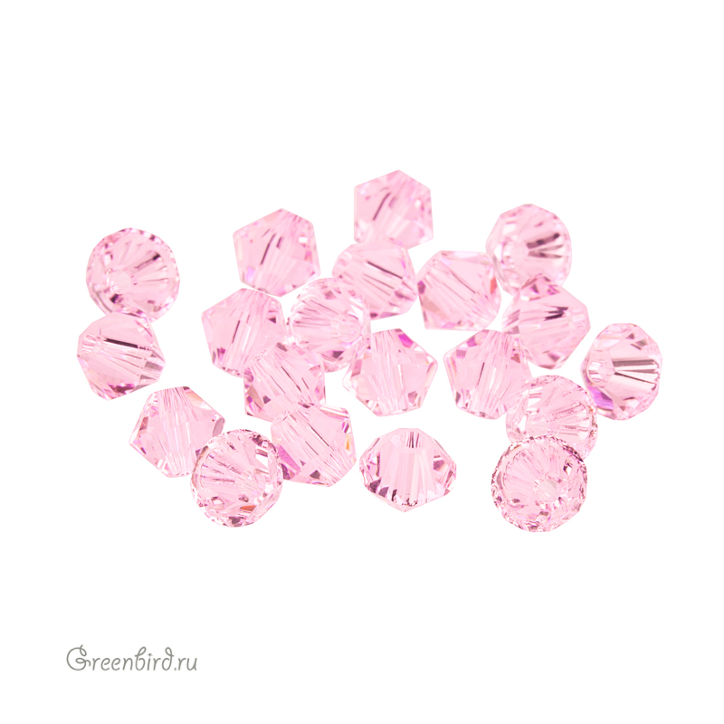 Компонент для бижутерии Swarovski – бусины-биконусы (Swarovski Биконусы). Размер: 4 мм, отверстие: 0,6 мм, цвет: Rosaline (#508). Производство: Австрия. Цена указана за 20 шт.
