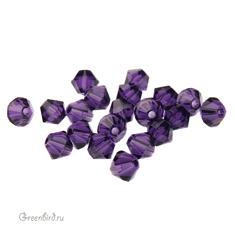 Компонент для бижутерии Swarovski – бусины-биконусы (Swarovski Биконусы). Размер: 4 мм, отверстие: 0,6 мм, цвет: Purple Velvet (#277). Производство: Австрия. Цена указана за 20 шт.