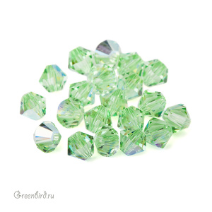 Компонент для бижутерии Swarovski – бусины-биконусы (Swarovski Биконусы). Размер: 4 мм, отверстие: 0,6 мм, цвет: Peridot AB (#214AB). Производство: Австрия. Цена указана за 20 шт.\n