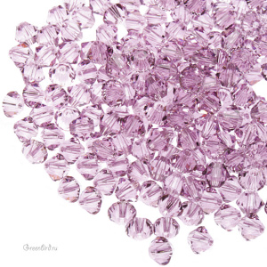 Компонент для бижутерии Swarovski – бусины-биконусы (Swarovski Биконусы). Размер: 4 мм, отверстие: 0,6 мм, цвет: Light Amethyst (#212). Производство: Австрия. Цена указана за 20 шт.
