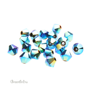 Компонент для бижутерии Swarovski – бусины-биконусы (Swarovski Биконусы). Размер: 4 мм, цвет: Jet Aurore Boreale 2X (#280AB2). Производство: Австрия. Цена указана за 20 шт.