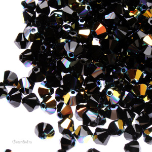 Компонент для бижутерии Swarovski – бусины-биконусы (Swarovski Биконусы). Размер: 4 мм, отверстие: 0,6 мм, цвет: Jet Aurore Boreale (#280AB). Производство: Австрия. Цена указана за 20 шт.