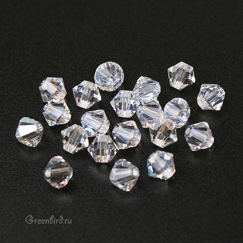Компонент для бижутерии Swarovski – бусины-биконусы (Swarovski Биконусы). Размер: 4 мм, отверстие: 0,6 мм, цвет: Moonlight (#001MOL). Производство: Австрия. Цена указана за 20 шт.