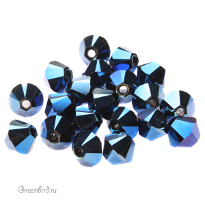 Swarovski 5328 Xilion Bicone Bead — биконусы или двуконусные бусины с фирменной огранкой Xilion. Эта огранка создаёт максимальный блеск за счёт дополнительных фасеток на гранях. Компонент для бижутерии и вышивки. Размер: 4 мм, отверстие: 0,8 мм. Цвет: прозрачный с эффектом "Синий металлик" с двух сторон кристалла / Crystal Metallic Blue 2X (#001METBL2). Материал: стекло. Производство: Австрия. Цена указана за 20 шт.