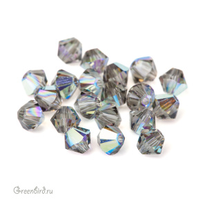 Компонент для бижутерии Swarovski – бусины-биконусы (Swarovski Биконусы). Размер: 4 мм, отверстие: 0,6 мм, цвет: Black Diamond AB (#215AB). Производство: Австрия. Цена указана за 20 шт.\n