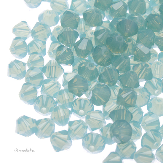 Компонент для бижутерии Swarovski – бусины-биконусы (Swarovski Биконусы). Размер: 4 мм, отверстие: 0,6 мм, цвет: Pacific Opal (#390). Производство: Австрия. Цена указана за 20 шт.