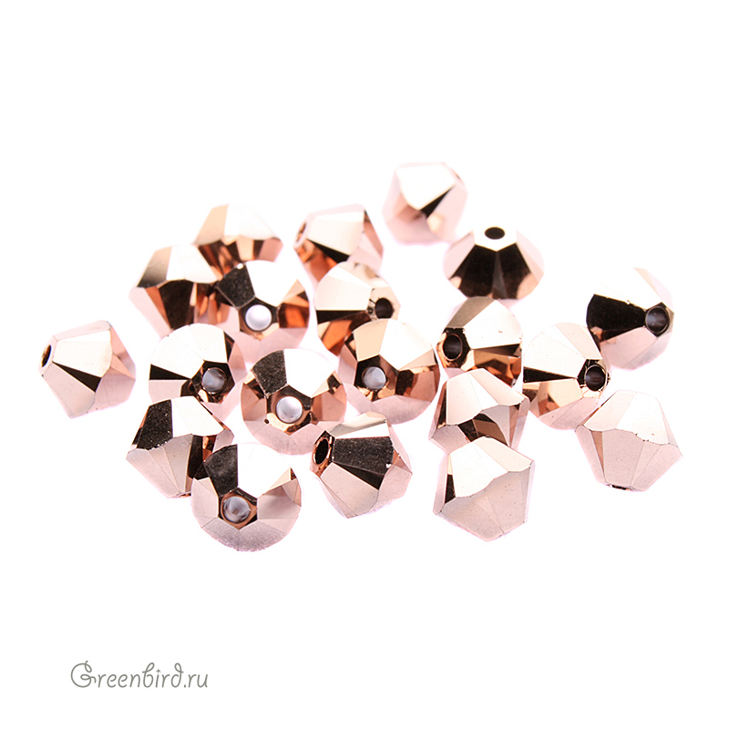 Компонент для бижутерии Swarovski – бусины-биконусы (Swarovski Биконусы). Размер: 4 мм, отверстие: 0,6 мм, цвет: Rose Gold 2X (#001ROGL2). Производство: Австрия. Цена указана за 20 шт.
