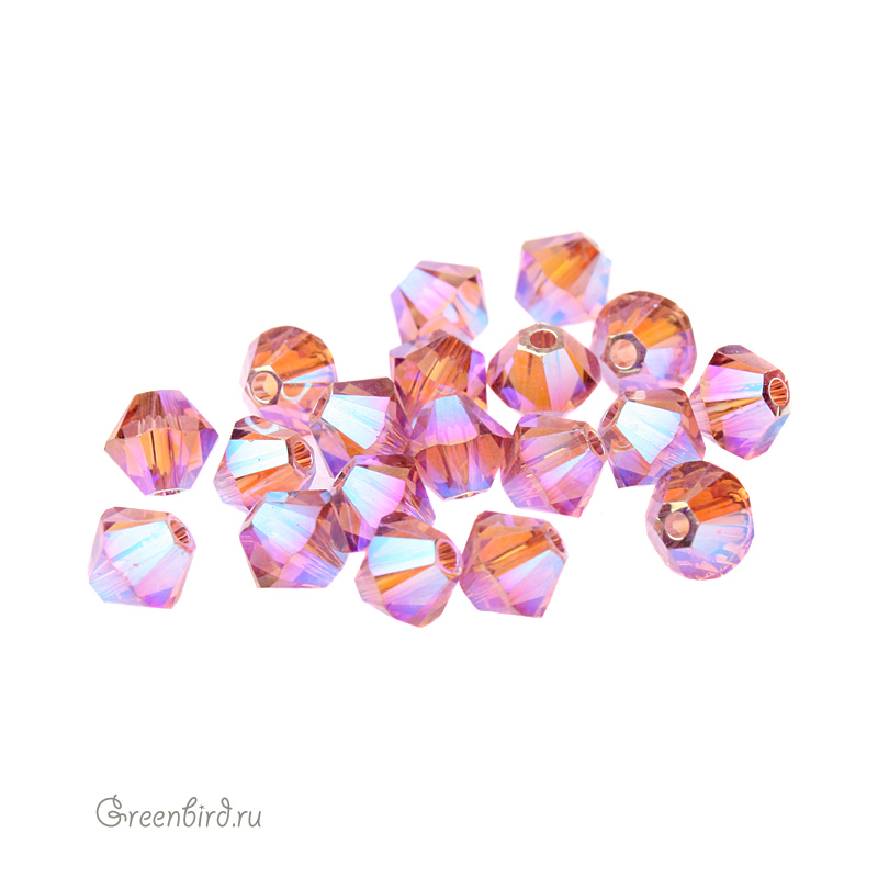 Компонент для бижутерии Swarovski – бусины-биконусы (Swarovski Биконусы). Размер: 4 мм, отверстие: 0,6 мм, цвет: Blush Rose AB 2X (#257AB2). Производство: Австрия. Цена указана за 20 шт.