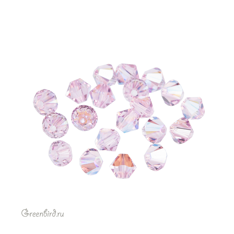 Компонент для бижутерии Swarovski – бусины-биконусы (Swarovski Биконусы). Размер: 4 мм, отверстие: 0,6 мм, цвет: Light Amethyst Shimmer (#212SHIM). Производство: Австрия. Цена указана за 20 шт.