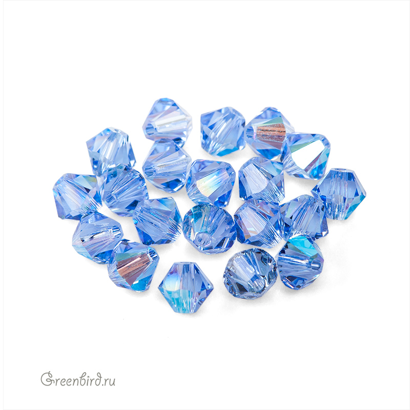 Компонент для бижутерии Swarovski – бусины-биконусы (Swarovski Биконусы). Размер: 4 мм, отверстие: 0,6 мм, цвет: Light Sapphire Shimmer (#211SHIM). Производство: Австрия. Цена указана за 20 шт.