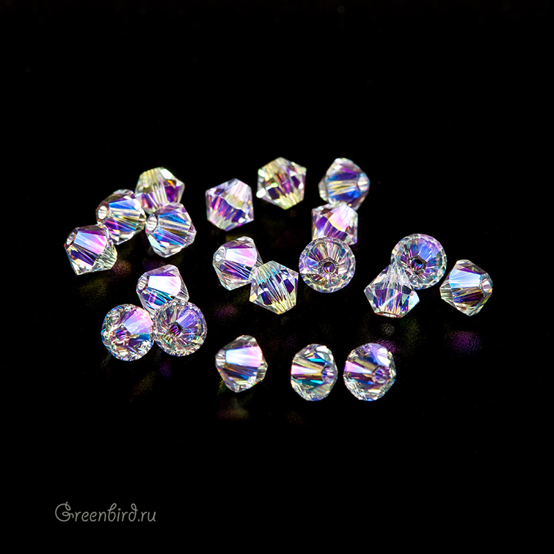 Компонент для бижутерии Swarovski – бусины (Swarovski Биконусы) 4 мм, отверстие: 0,6 мм, цвет: Crystal Shimmer 2X (#001SHIM2). Производство: Австрия. Цена указана за 20 шт.