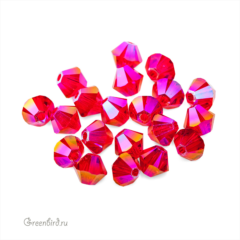 Компонент для бижутерии Swarovski – бусины-биконусы (Swarovski Биконусы). Размер: 4 мм, отверстие: 0,6 мм, цвет: Light Siam Shimmer 2X (#227SHIM2). Производство: Австрия. Цена указана за 20 шт.