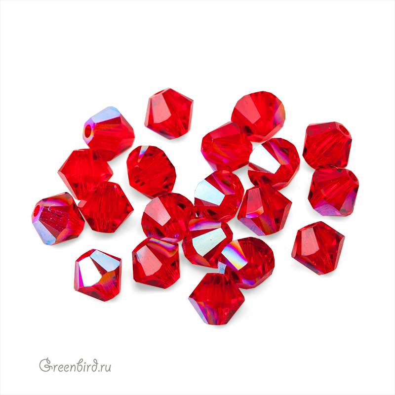 Компонент для бижутерии Swarovski – бусины-биконусы (Swarovski Биконусы). Размер: 4 мм, отверстие: 0,6 мм, цвет: Light Siam Shimmer (#227SHIM). Производство: Австрия. Цена указана за 20 шт.